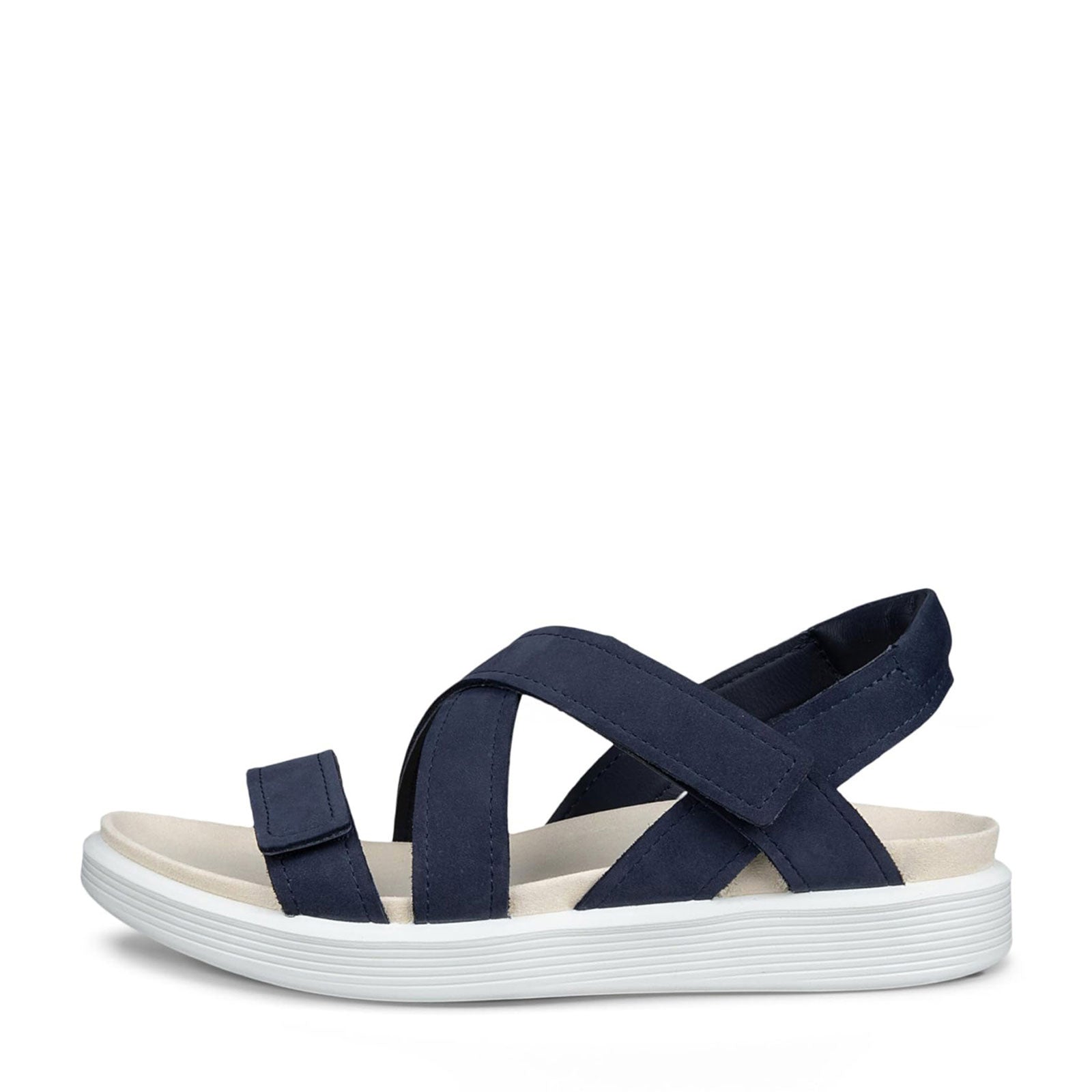 Premium ECCO leather and a clean, modern silhouette give the Soft Cross Strap Sandal an effortlessly polished look for everyday wear. The cushioned microfiber footbed and plush leather lining create a smooth, supportive feel that keeps feet feeling great throughout the day. Finished with three adjustable straps and lightweight FLUIDFORM Direct Comfort Technology, this sandal offers a personalized fit with flexible, easygoing comfort.