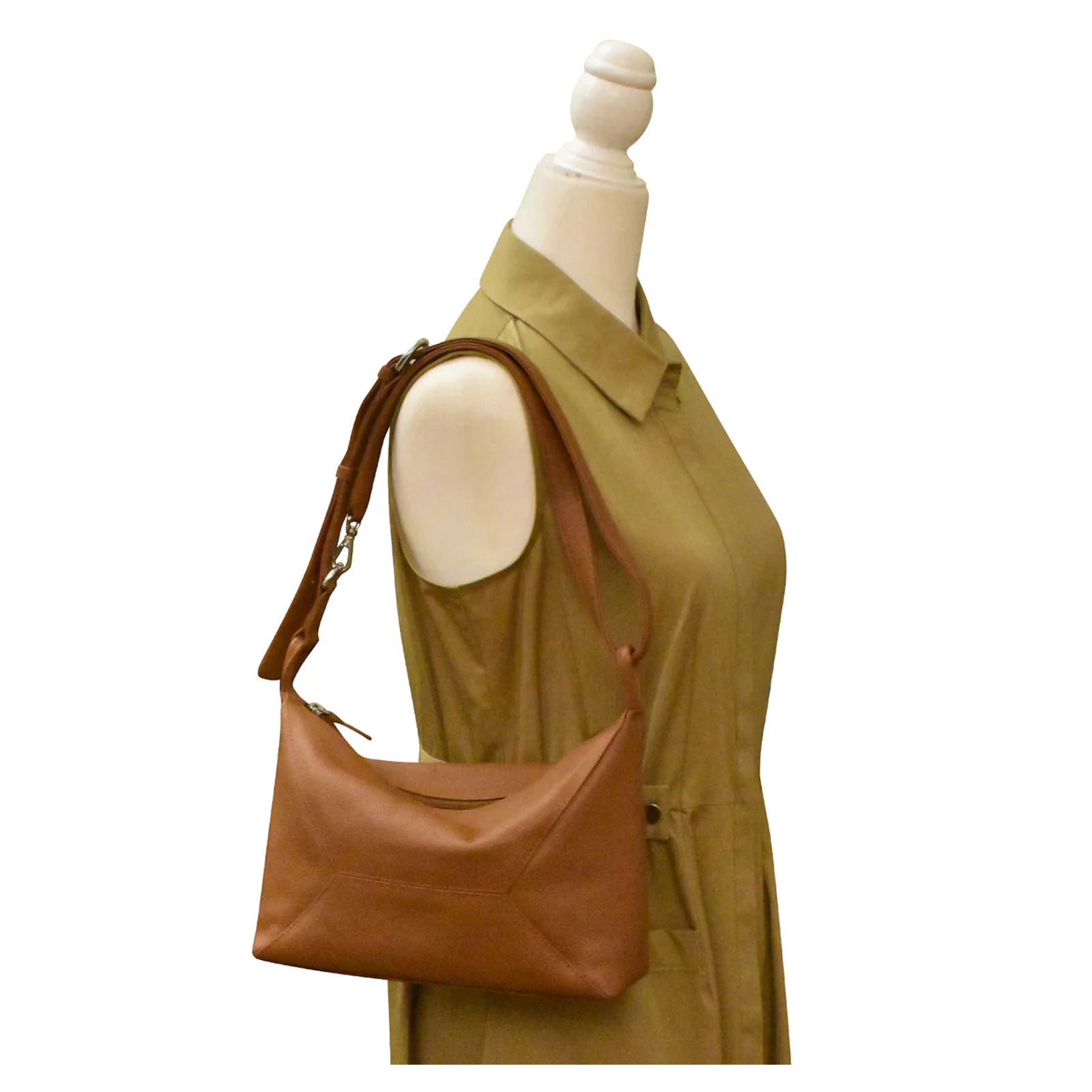 This slouchy medium bag blends laid-back charm with thoughtful organization, crafted in genuine leather with a top zip closure and a sleek silhouette. A convertible 23-inch strap, RFID lining, and a mix of interior and exterior pockets make it a stylish go-to for everyday versatility