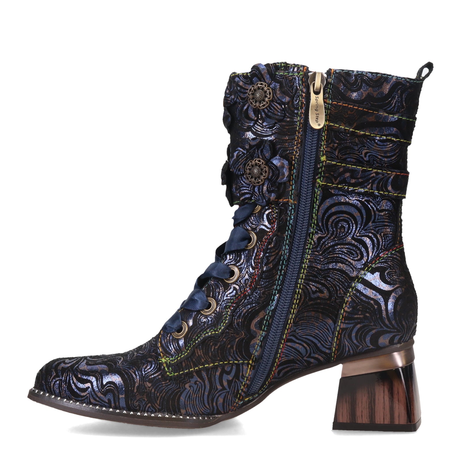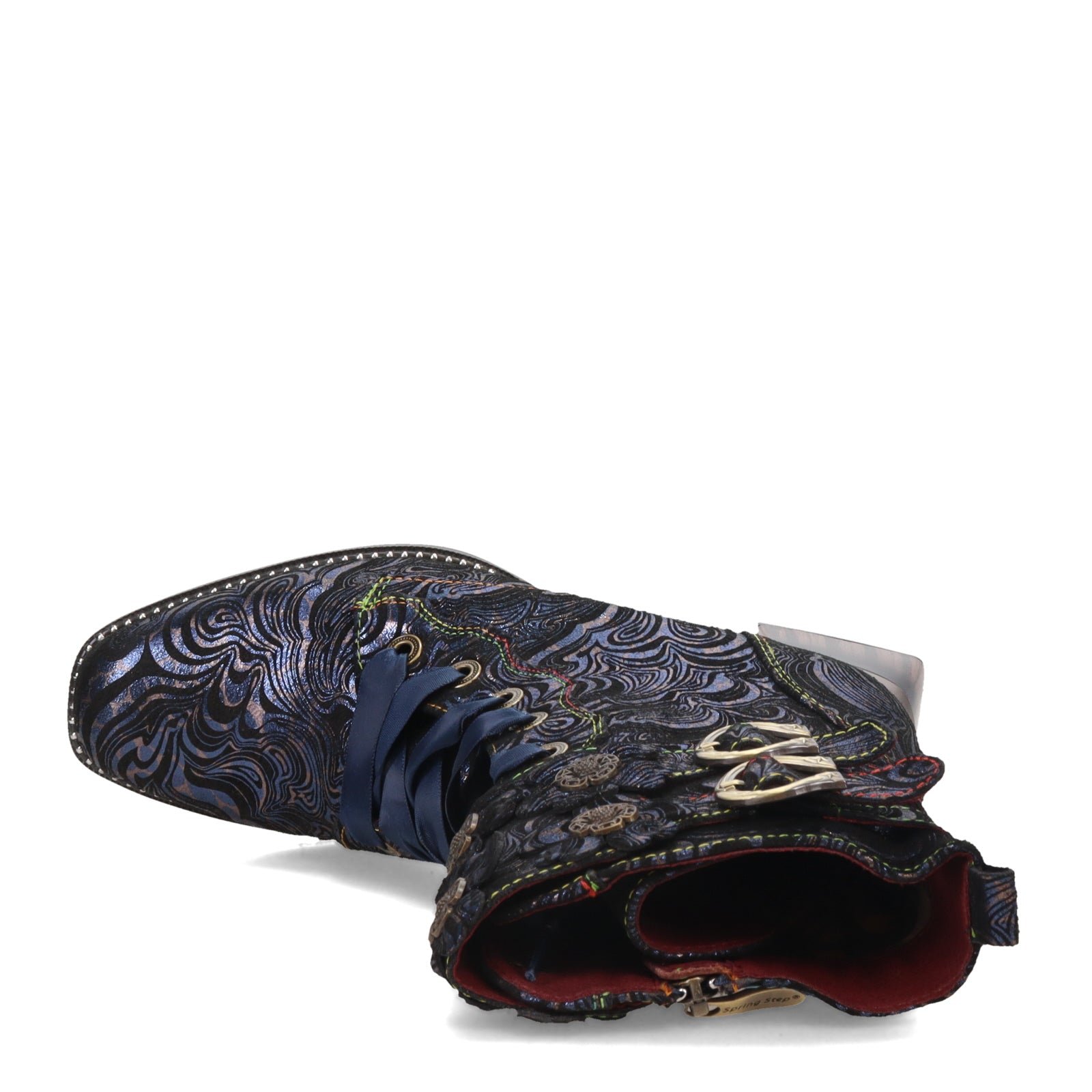 L'Artiste Originals is an edgy and playful brand that turns vintage silhouettes into modern art. The intricate Art-Deco metallic swirls give this boot a classy feel